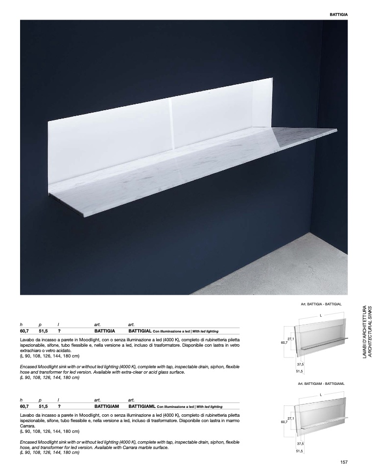 Lavabo da incasso a parete in Moodlight, con o senza illuminazione a led (4000 K), completo di rubinetteria piletta
