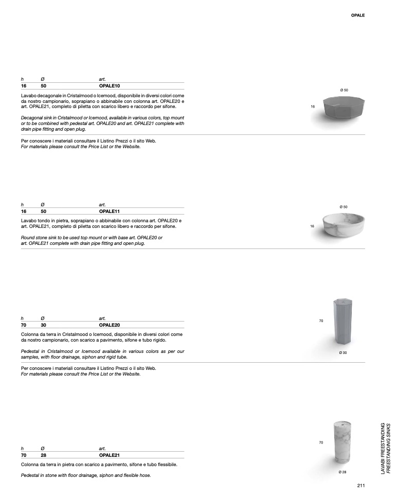 or to be combined with pedestal art. OPALE20 and art. OPALE21 complete with