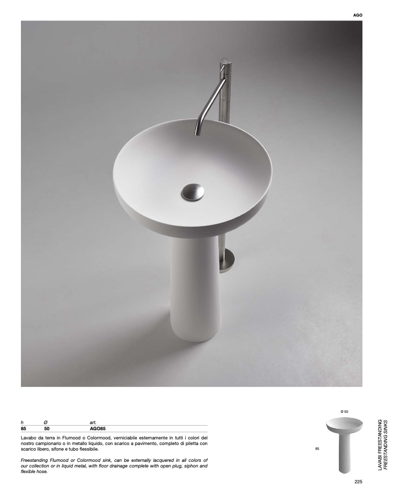 Freestanding Flumood or Colormood sink, can be externally lacquered in all colors of