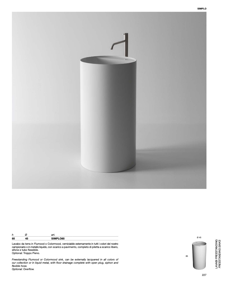 Freestanding Flumood or Colormood sink, can be externally lacquered in all colors of