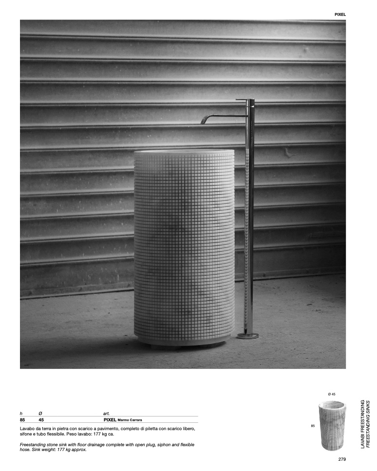 Lavabo da terra in pietra con scarico a pavimento, completo di piletta con scarico libero,