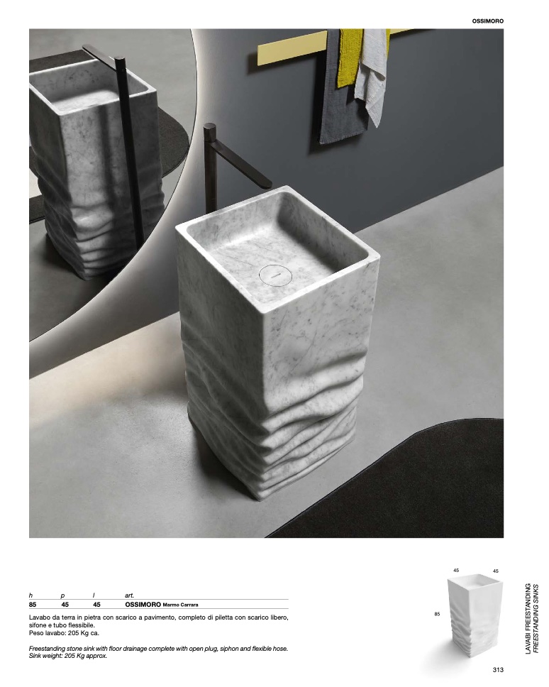 Lavabo da terra in pietra con scarico a pavimento, completo di piletta con scarico libero,