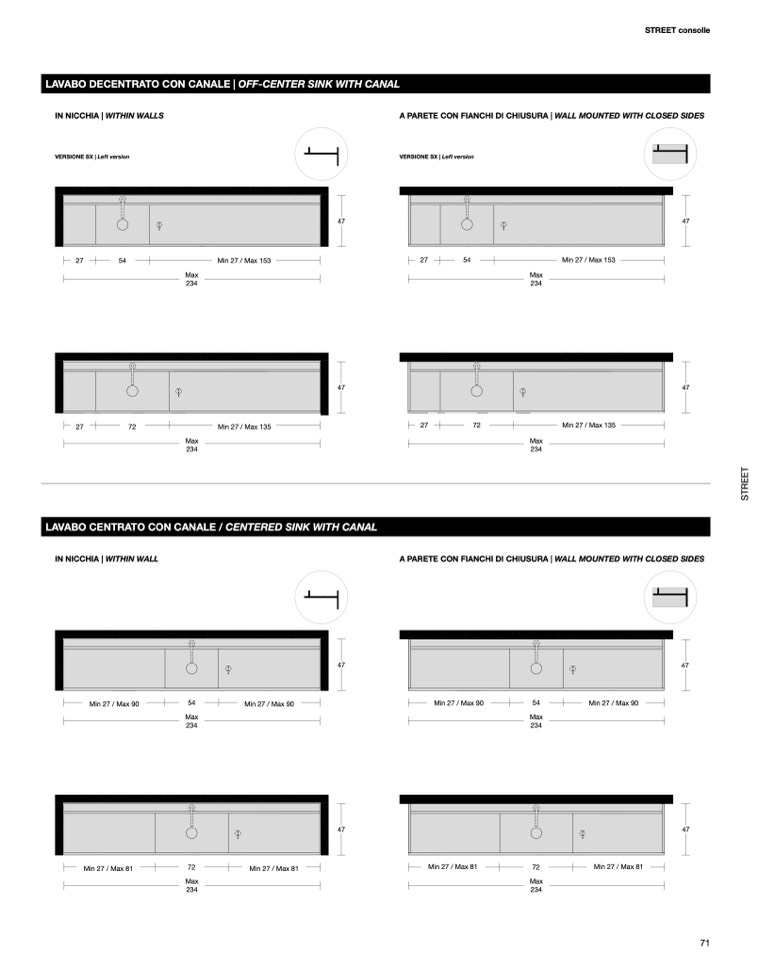 LAVABO CENTRATO CON CANALE / CENTERED SINK WITH CANAL