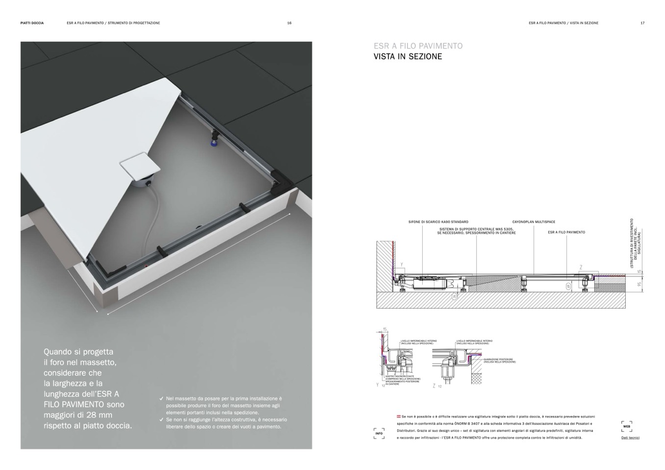 e raccordo per infiltrazioni - l’ESR A FILO PAVIMENTO offre una protezione completa contro le infiltrazioni di umidità.