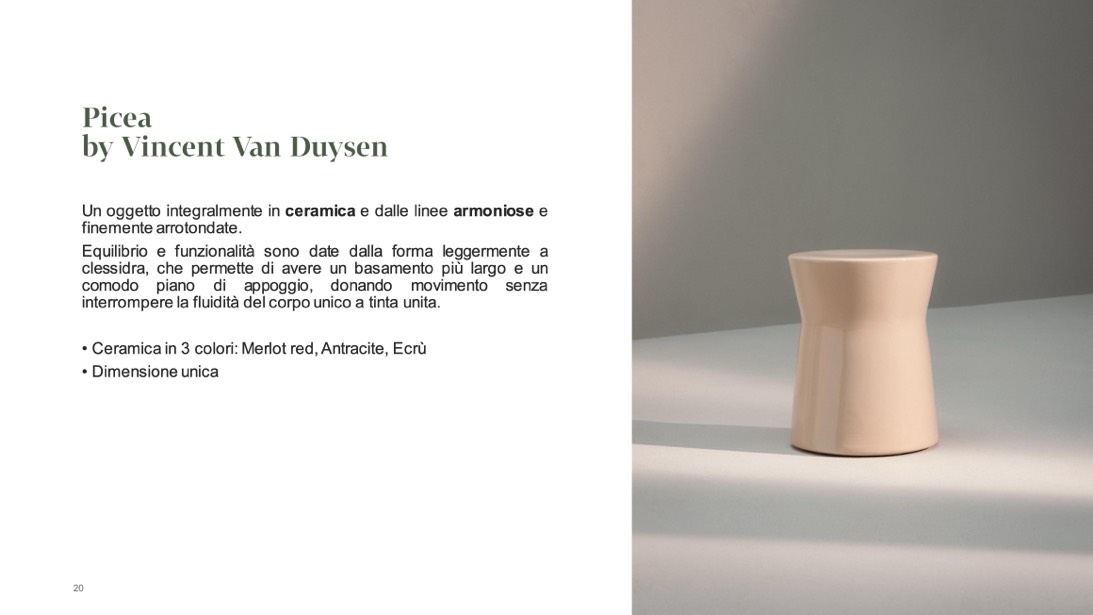 Un oggetto integralmente in ceramica e dalle linee armoniose e