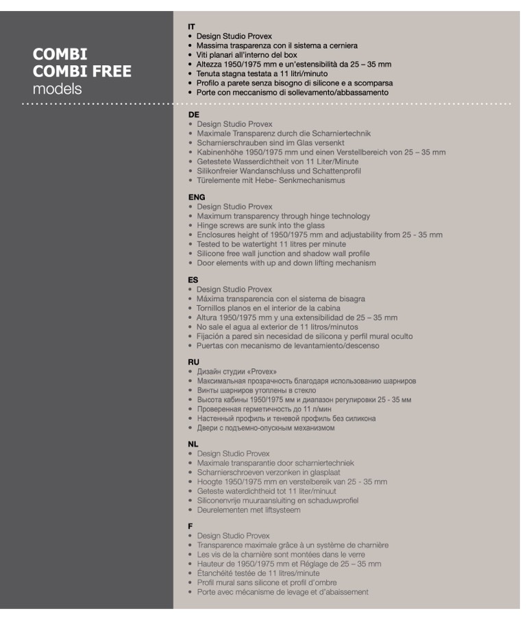 • Profilo a parete senza bisogno di silicone e a scomparsa
