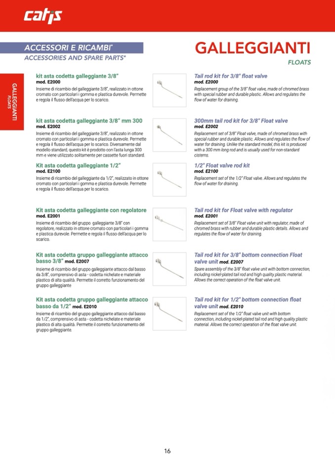Replacement group of the 3/8′′ float valve, made of chromed brass