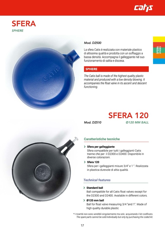 Sfera per i galleggianti misure 3/4” e 1 “. Realizzata