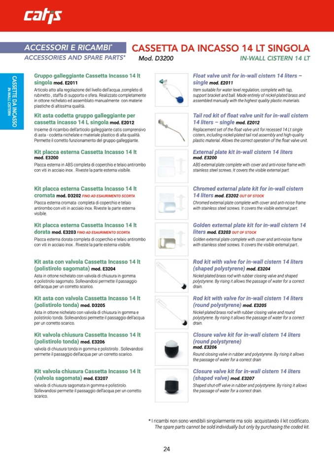 * I ricambi non sono vendibili singolarmente ma solo acquistando il kit codificato.