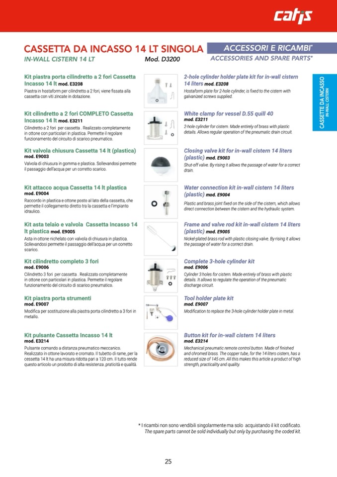 * I ricambi non sono vendibili singolarmente ma solo acquistando il kit codificato.