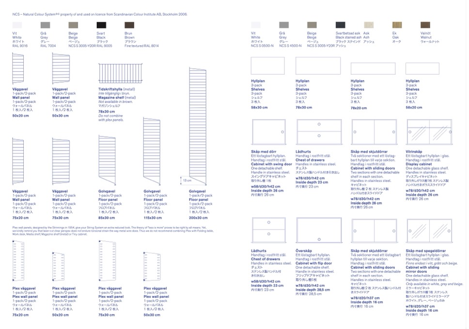 Plex wall panels, designed by the Strinnings in 1954, give your String System an extra reduced look. The theory of ”less is more” proves to be right by all means. Yet,