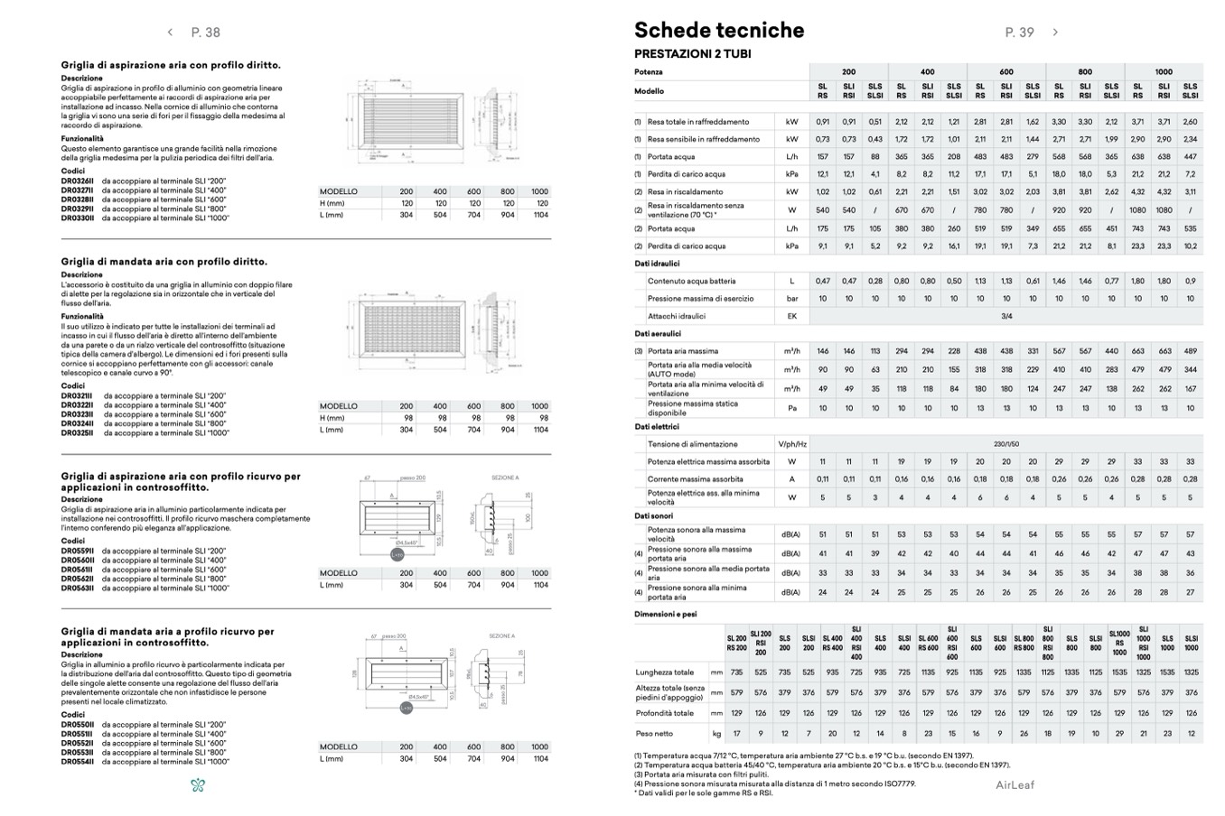 (1) Temperatura acqua 7/12 °C, temperatura aria ambiente 27 °C b.s. e 19 °C b.u. (secondo EN 1397).