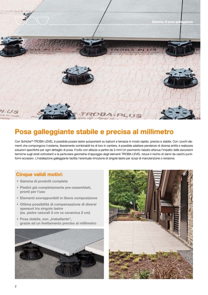 termiche sugli strati sottostanti e la particolare geometria d’appoggio degli elementi TROBA-LEVEL riduce il rischio di danni da carichi punti-