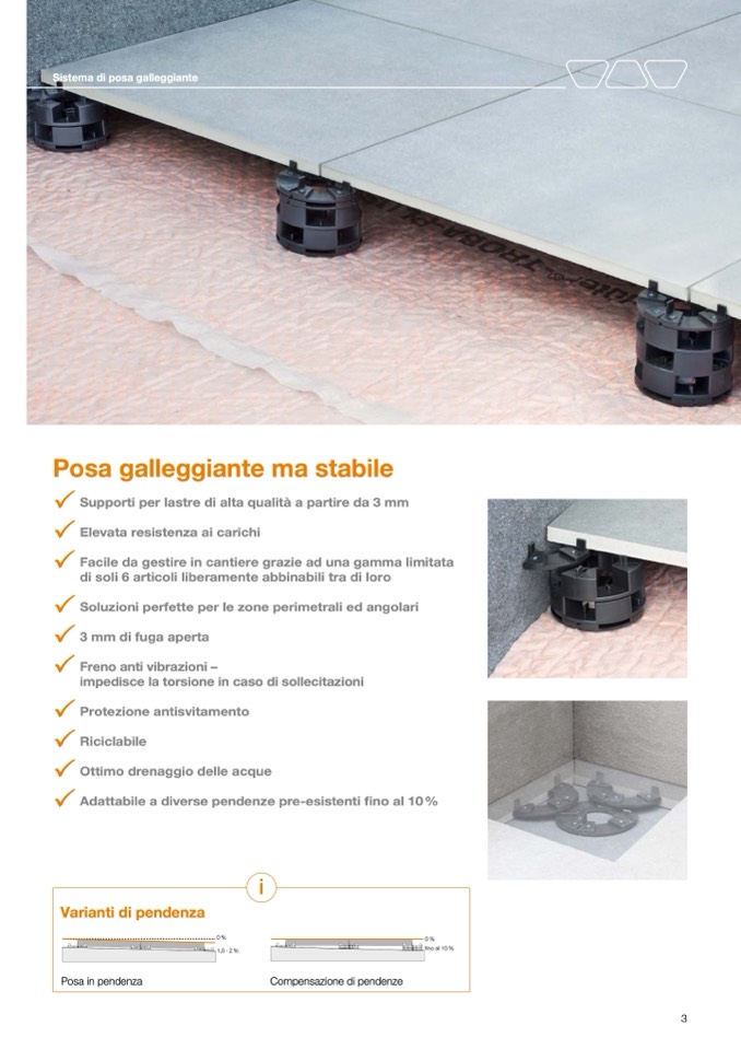 Adattabile a diverse pendenze pre-esistenti fino al 10 %