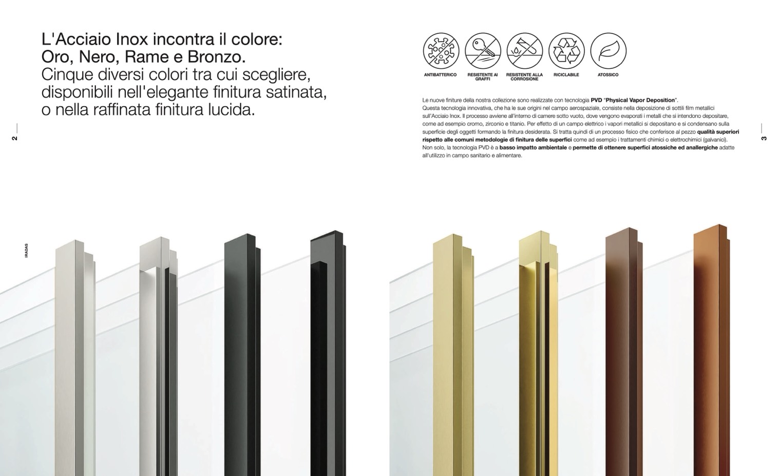 Le nuove finiture della nostra collezione sono realizzate con tecnologia PVD “Physical Vapor Deposition”.