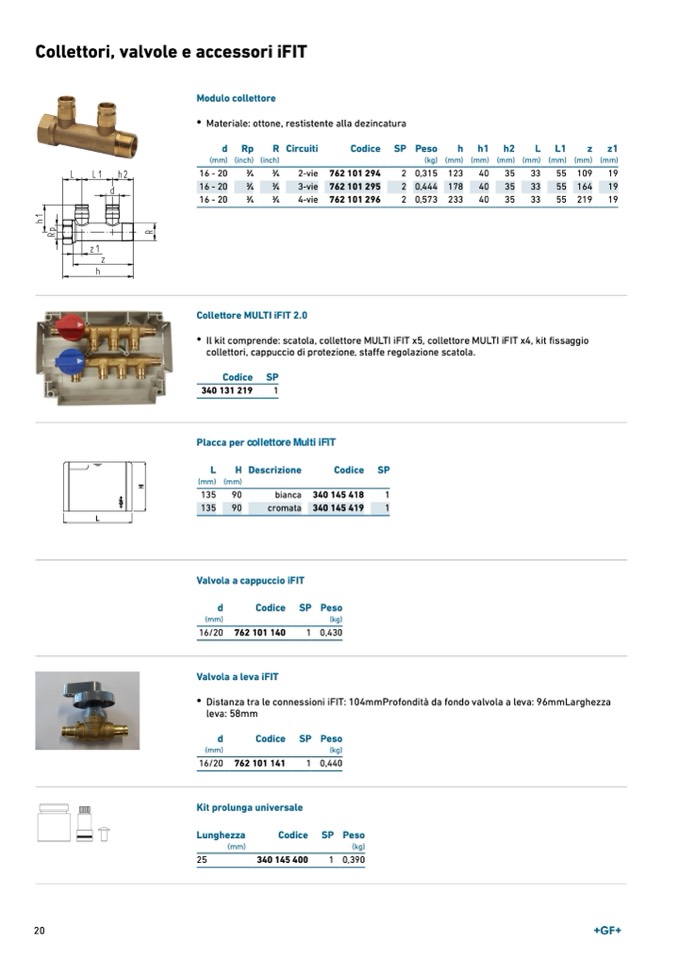 Il kit comprende: scatola, collettore MULTI iFIT x5, collettore MULTI iFIT x4, kit fissaggio