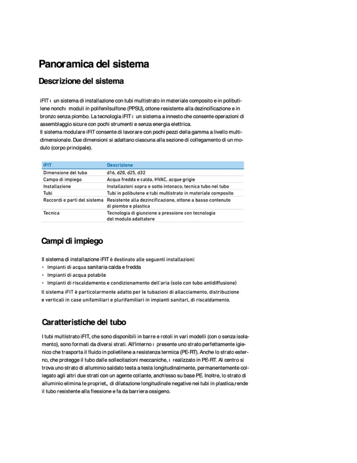 iFIT è un sistema di installazione con tubi multistrato in materiale composito e in polibuti-