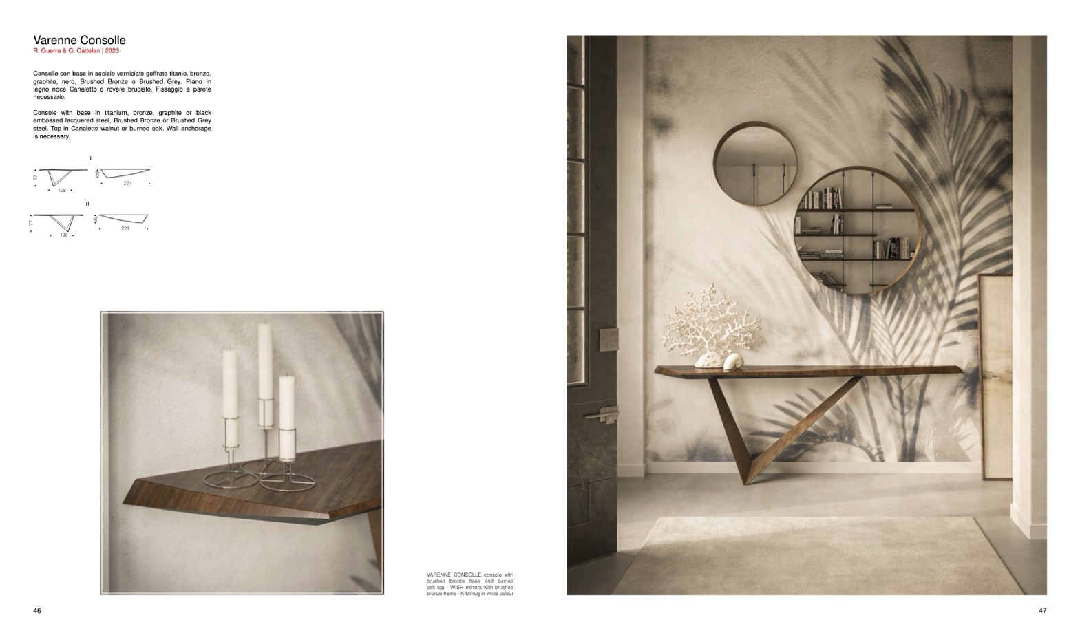 steel. Top in Canaletto walnut or burned oak. Wall anchorage