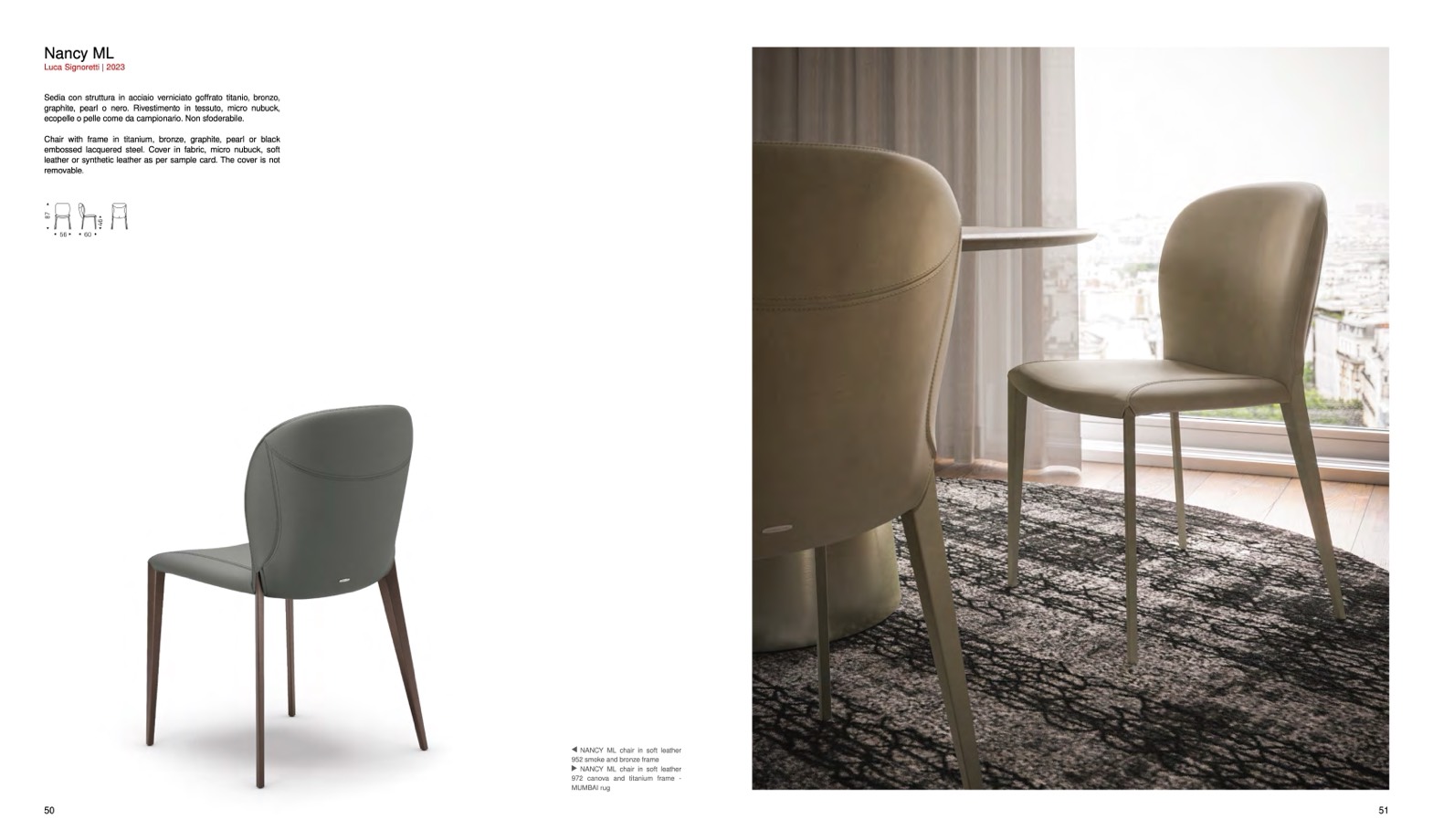 Chair with frame in titanium, bronze, graphite, pearl or black