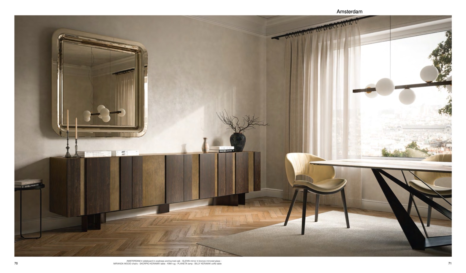 AMSTERDAM-4 sideboard in oxybrass and burned oak - GLENN mirror in bronze mirrored glass -