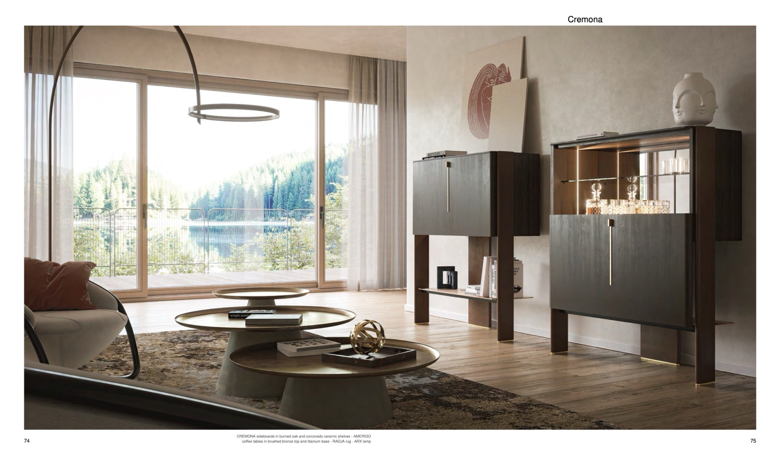 ffee tables in brushed bronze top and titanium base - RADJA rug - ARX lamp