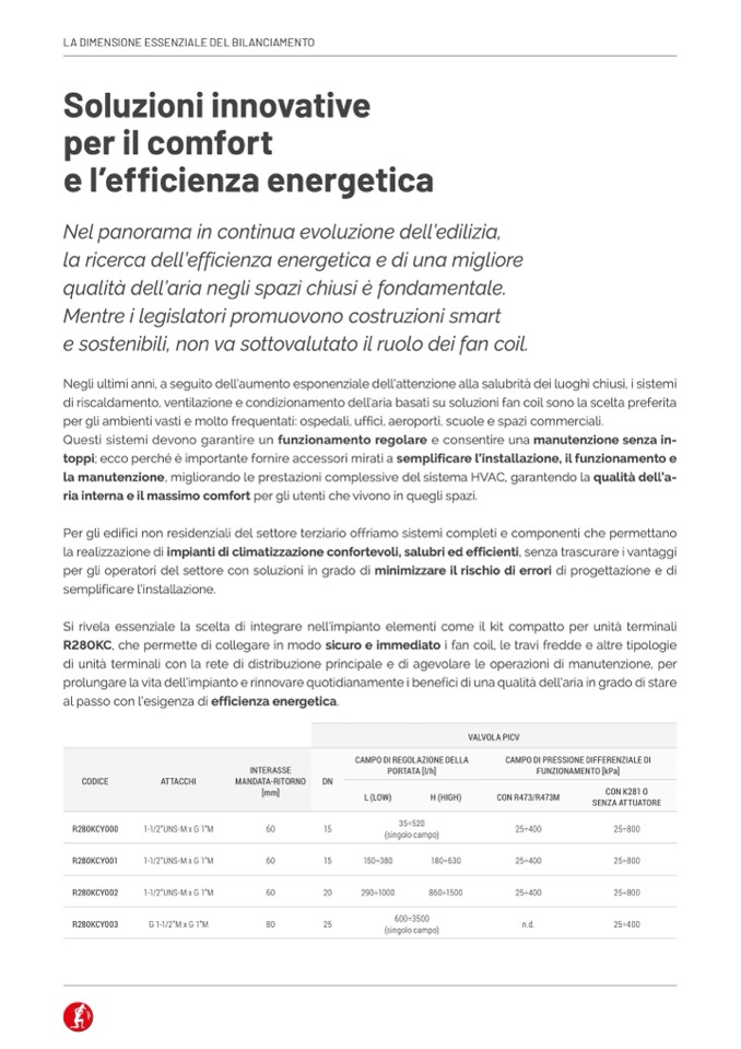 R280KC, che permette di collegare in modo sicuro e immediato i fan coil, le travi fredde e altre tipologie