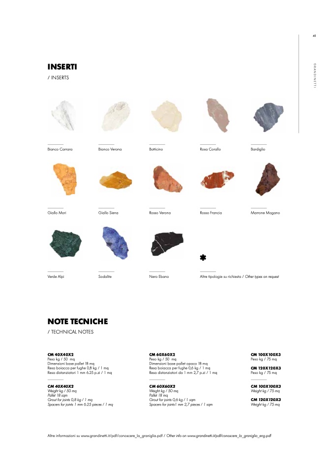 Altre informazioni su www.grandinetti.it/pdf/conoscere_la_graniglia.pdf / Other info on www.grandinetti.it/pdf/conoscere_la_graniglia_eng.pdf