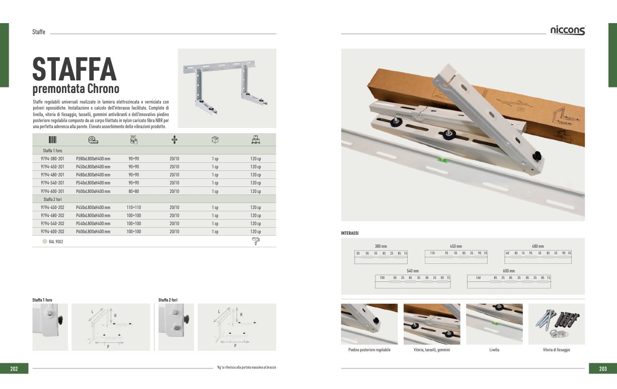 Staffe regolabili universali realizzate in lamiera elettrozincata e verniciata con