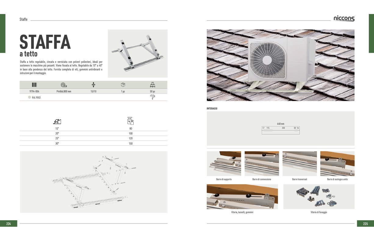 Staffa a tetto regolabile, zincata e verniciata con polveri poliesteri, ideali per