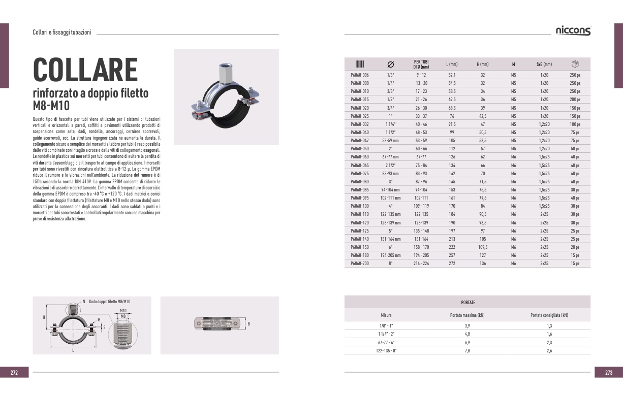 standard con doppia filettatura (filettature M8 e M10 nello stesso dado) sono