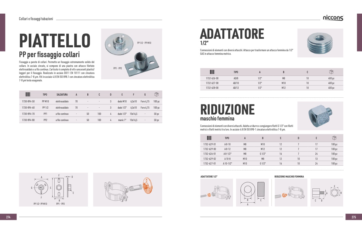 collare. In acciaio zincato, si compone di una piastra con attacco filettato