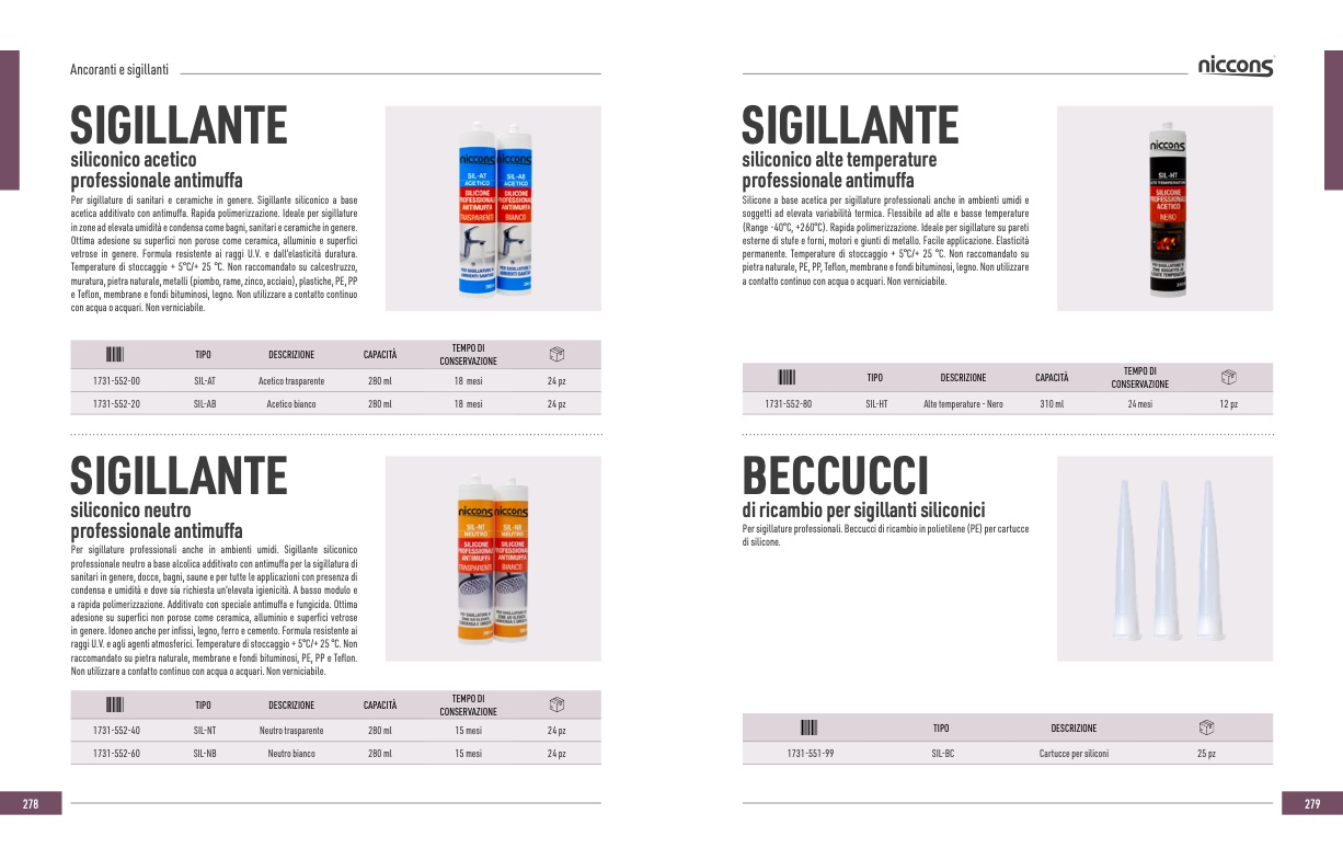 (Range -40°C, +260°C). Rapida polimerizzazione. Ideale per sigillature su pareti