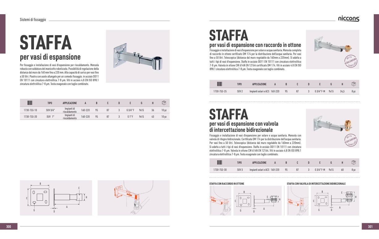 Si adatta a tutti i tipi di vasi d’espansione. Staffa in acciaio DD11 EN 10111 con zincatura