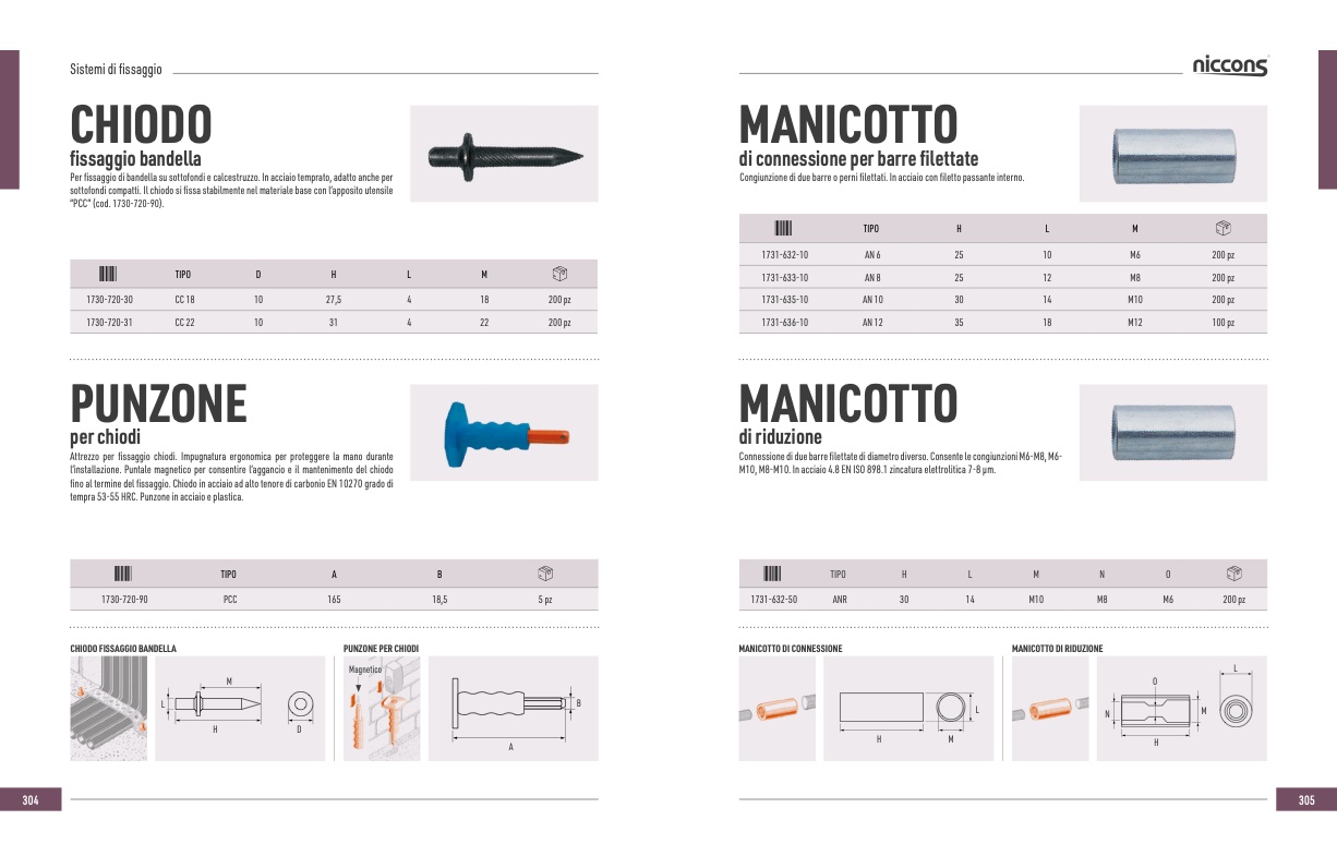 Per fissaggio di bandella su sottofondi e calcestruzzo. In acciaio temprato, adatto anche per