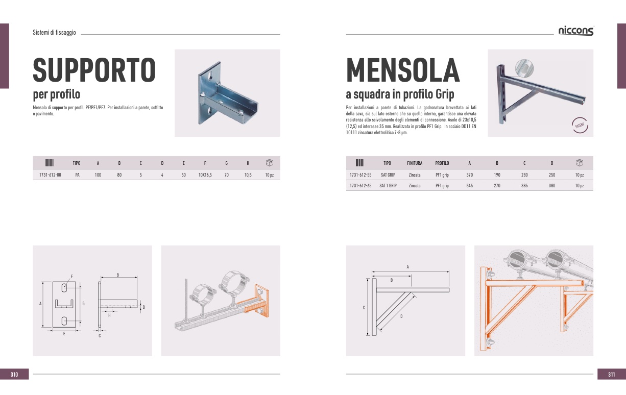Mensola di supporto per profili PF/PF1/PF7. Per installazioni a parete, soffitto