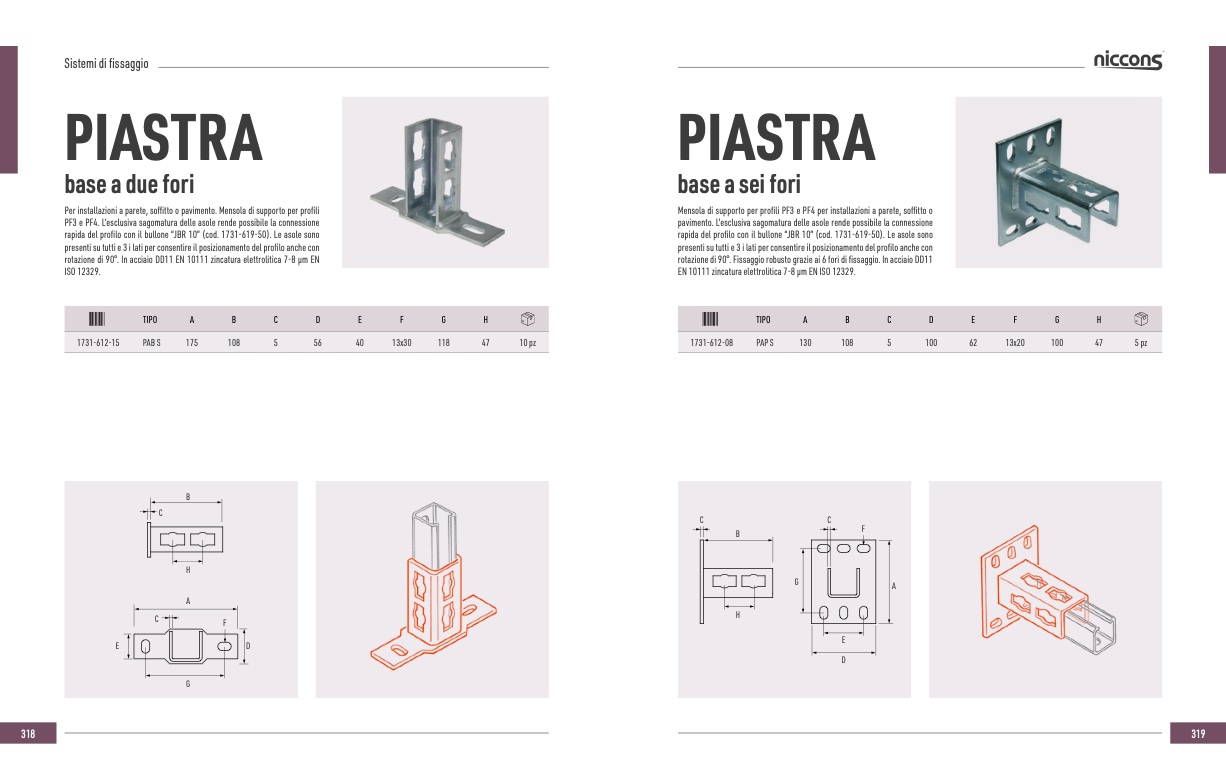 rotazione di 90°. Fissaggio robusto grazie ai 6 fori di fissaggio. In acciaio DD11