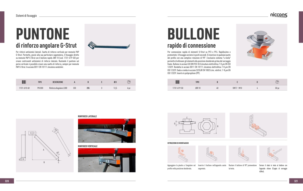 su mensole PAP G-Strut con il bullone rapido JBR 10 (cod. 1731-619-50) per