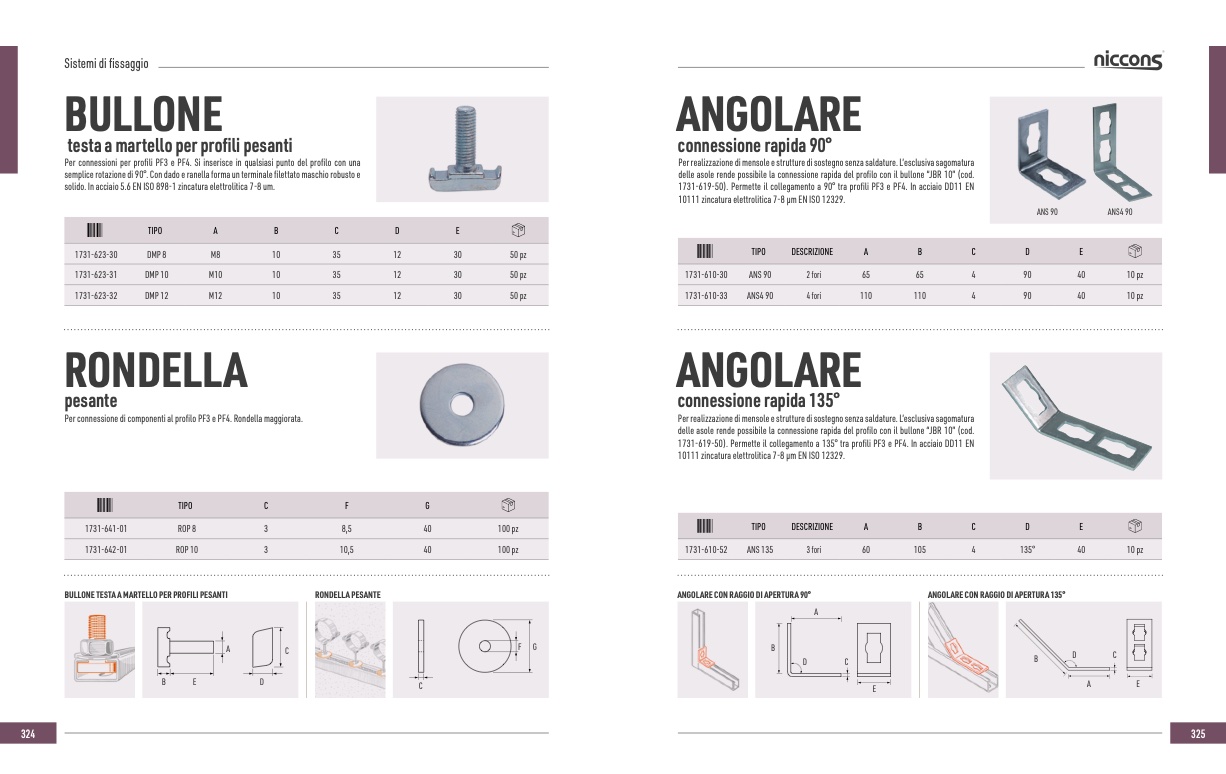 1731-619-50). Permette il collegamento a 90° tra profili PF3 e PF4. In acciaio DD11 EN