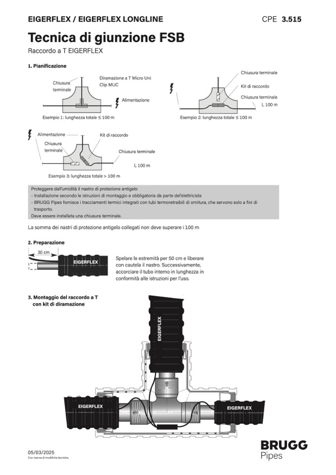 - BRUGG Pipes fornisce i tracciamenti termici integrati con tubi termoretraibili di ornitura, che servono solo a fini di