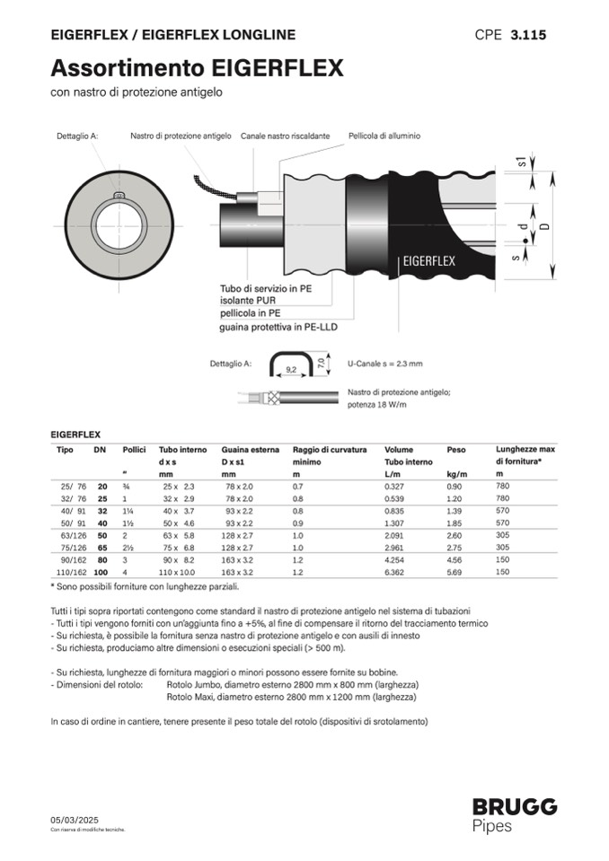 - Su richiesta, lunghezze di fornitura maggiori o minori possono essere fornite su bobine.