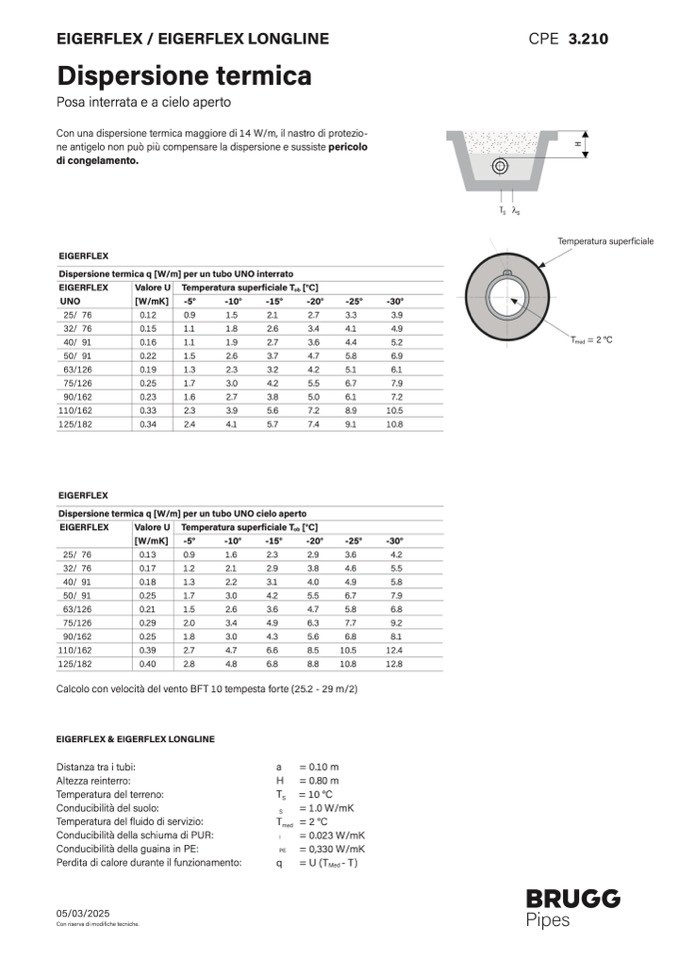 Dispersione termica q [W/m] per un tubo UNO cielo aperto