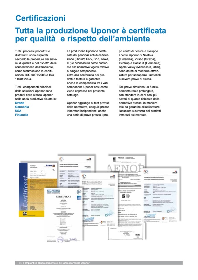54 l Impianti di Riscaldamento e di Raffrescamento Uponor