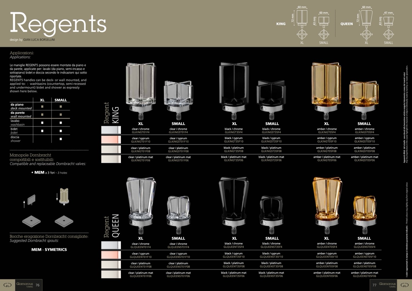 Le maniglie REGENTS possono essere montate da piano e