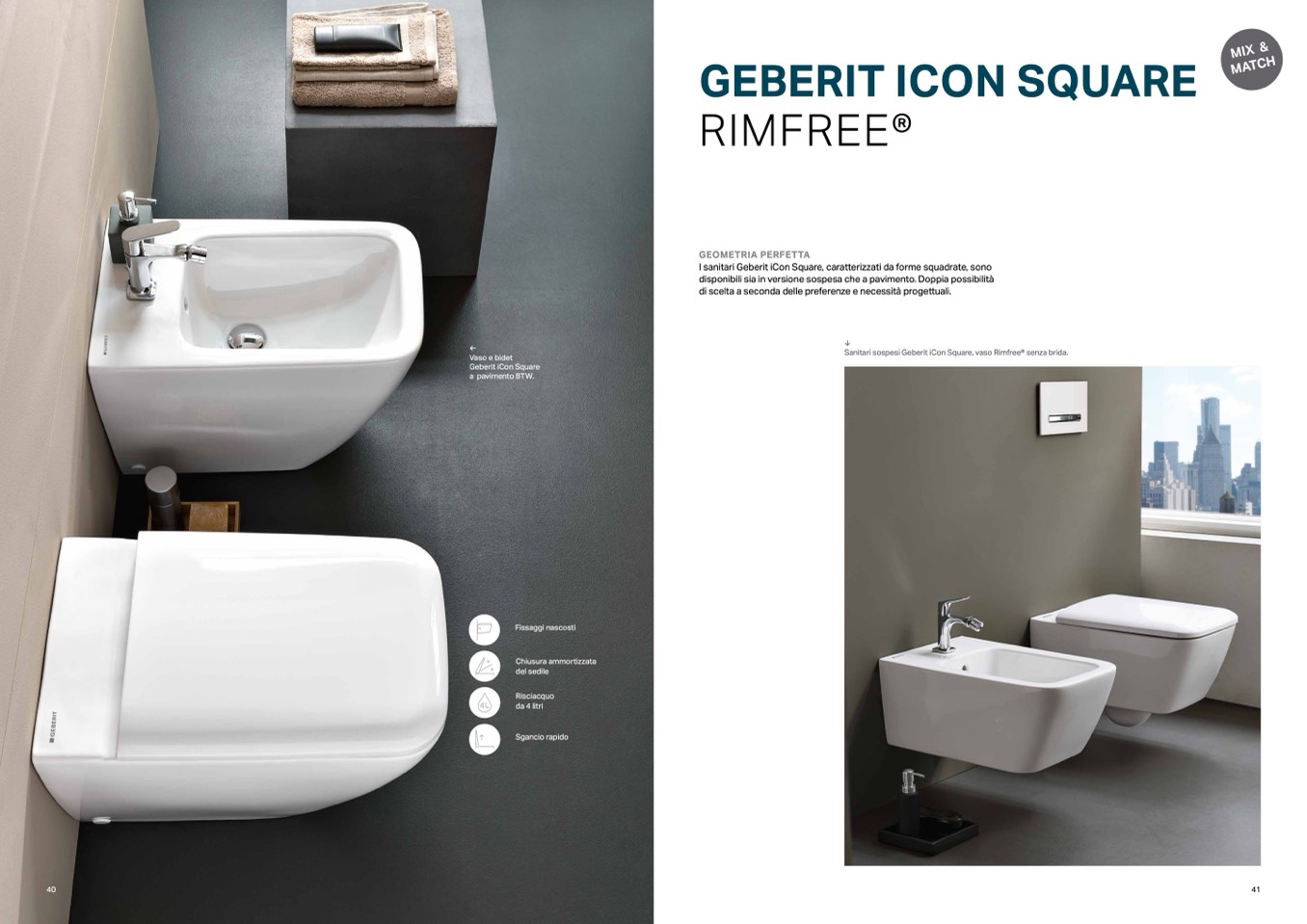 I sanitari Geberit iCon Square, caratterizzati da forme squadrate, sono