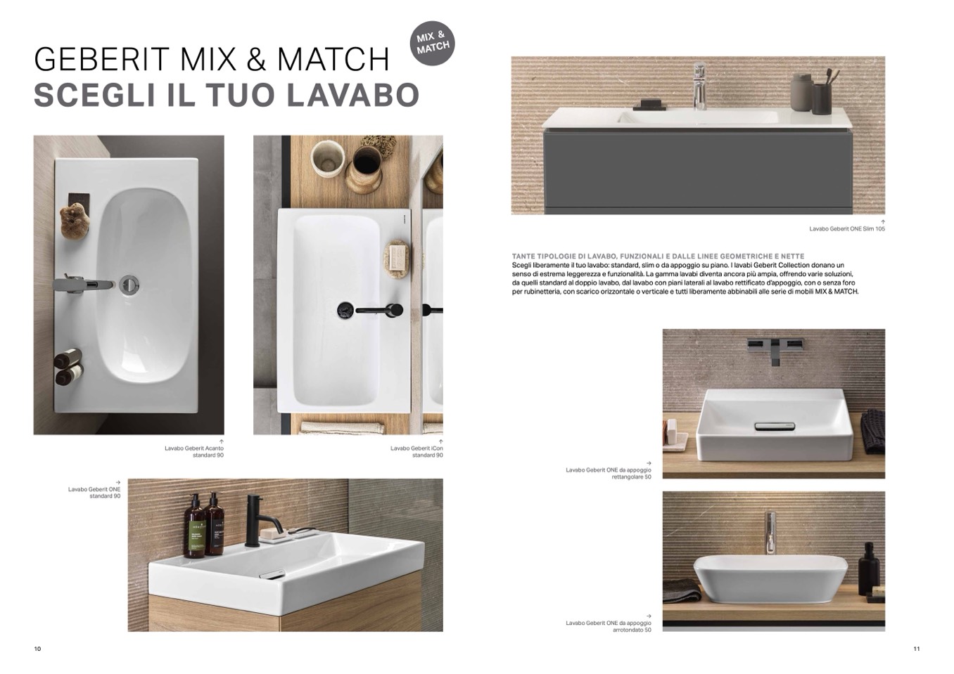 per rubinetteria, con scarico orizzontale o verticale e tutti liberamente abbinabili alle serie di mobili MIX & MATCH.