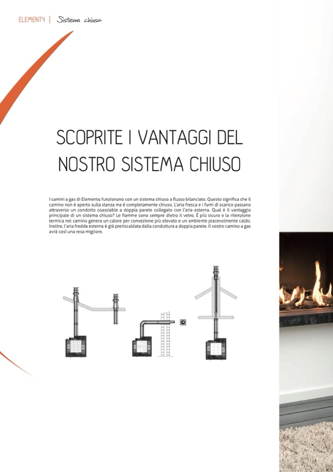 I camini a gas di Element4 funzionano con un sistema chiuso a flusso bilanciato. Questo significa che il