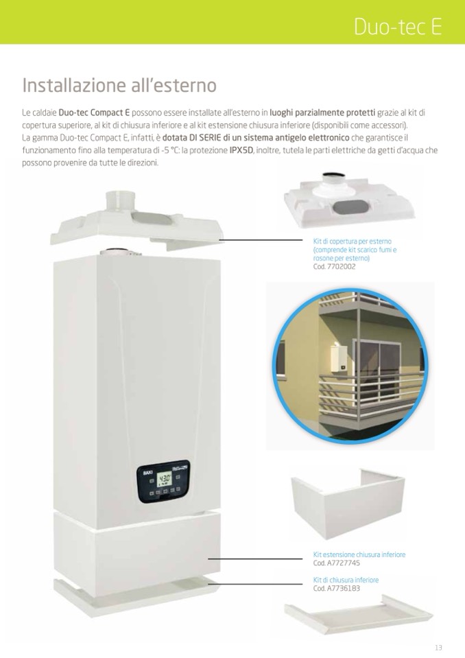 Le caldaie Duo-tec Compact E possono essere installate all’esterno in luoghi parzialmente protetti grazie al kit di