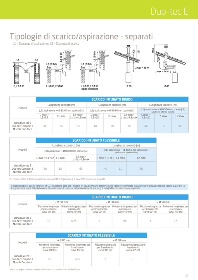 Per i diametri 80 e 60 la misura indicata dei condotti di aspirazione (L1 max) NON può essere superata