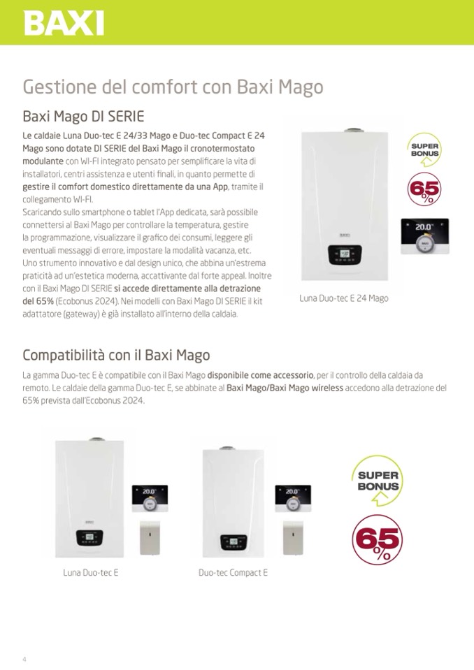 del 65% (Ecobonus 2024). Nei modelli con Baxi Mago DI SERIE il kit