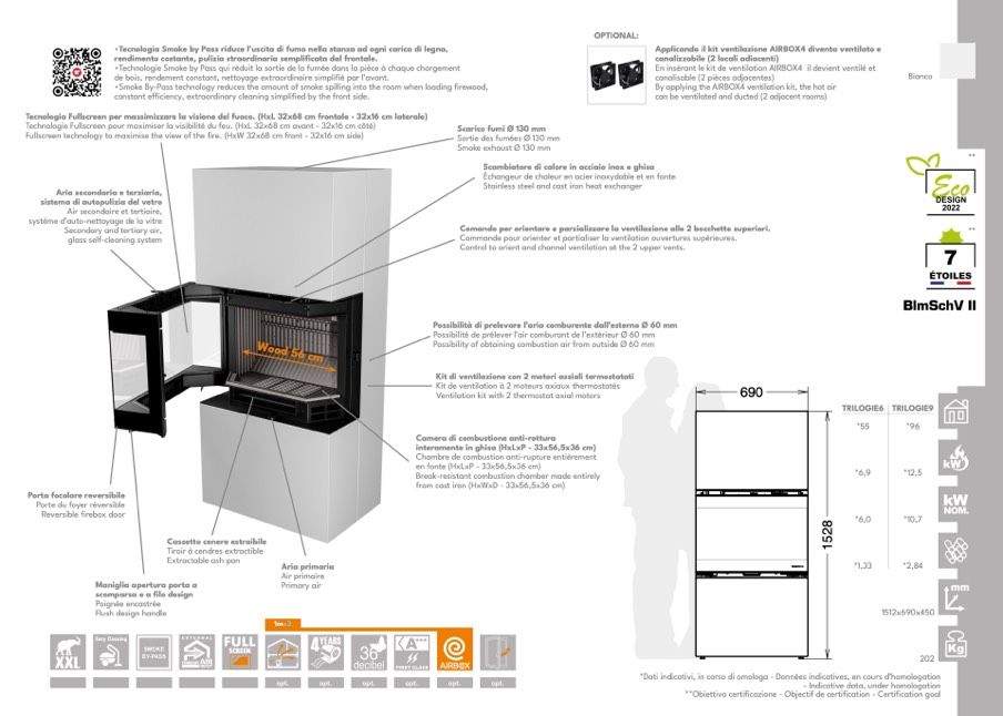 •Tecnologia Smoke by Pass riduce l’uscita di fumo nella stanza ad ogni carica di legna,